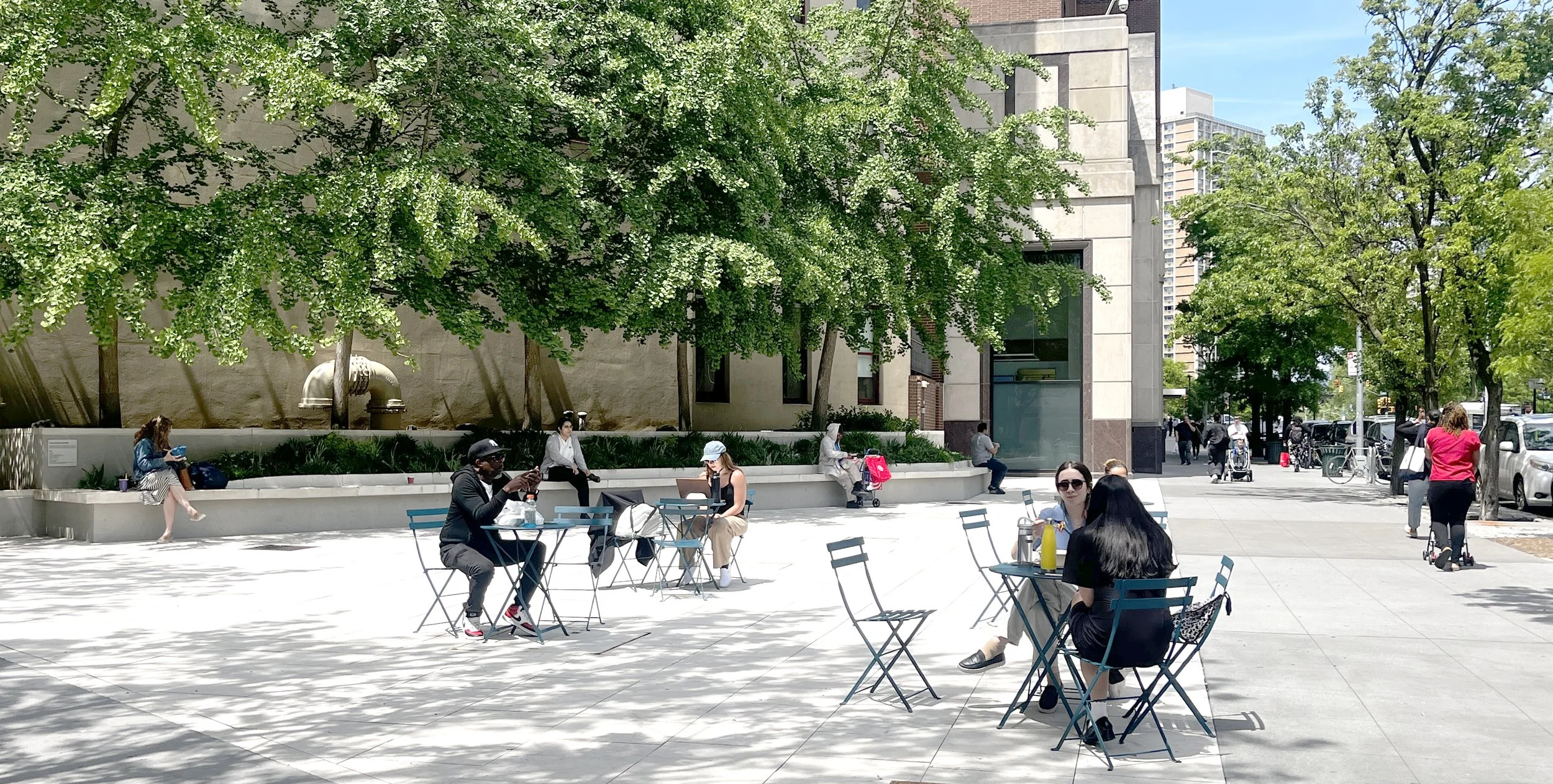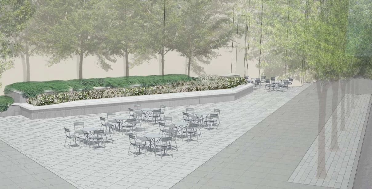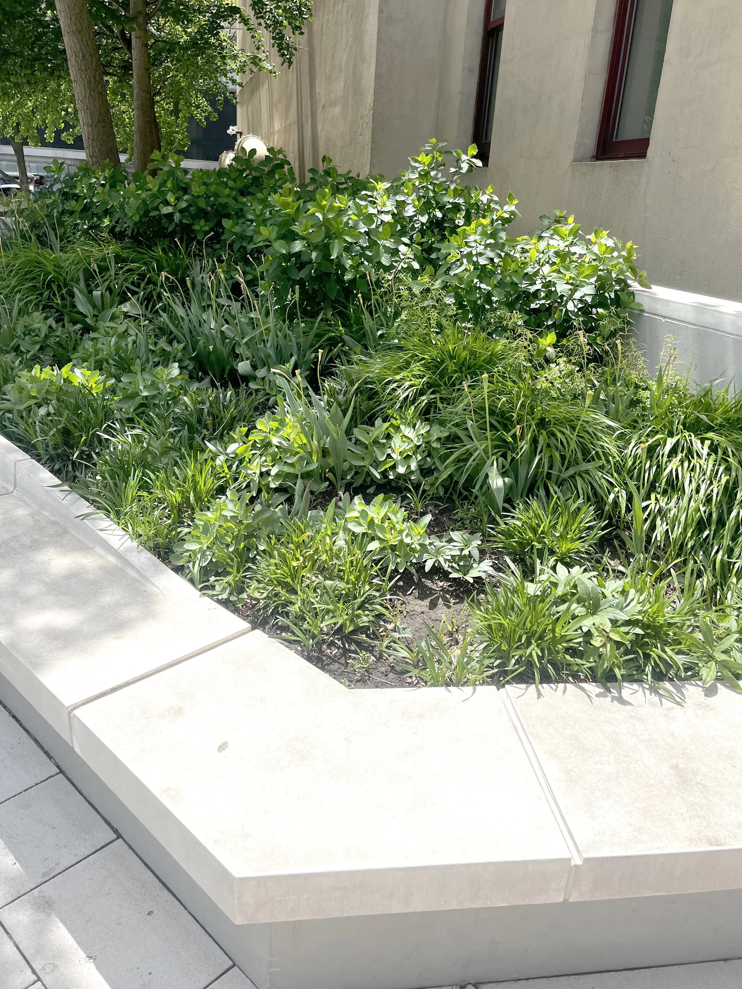 One Pierrepont Plaza transforms an existing Brooklyn plaza into an attractive lunchtime spot. The plaza adds new paving; adds subtle modern precast copings and a coating system to the existing brick planter walls; and will have mounded verdant plantings with white blooms across all seasons.
