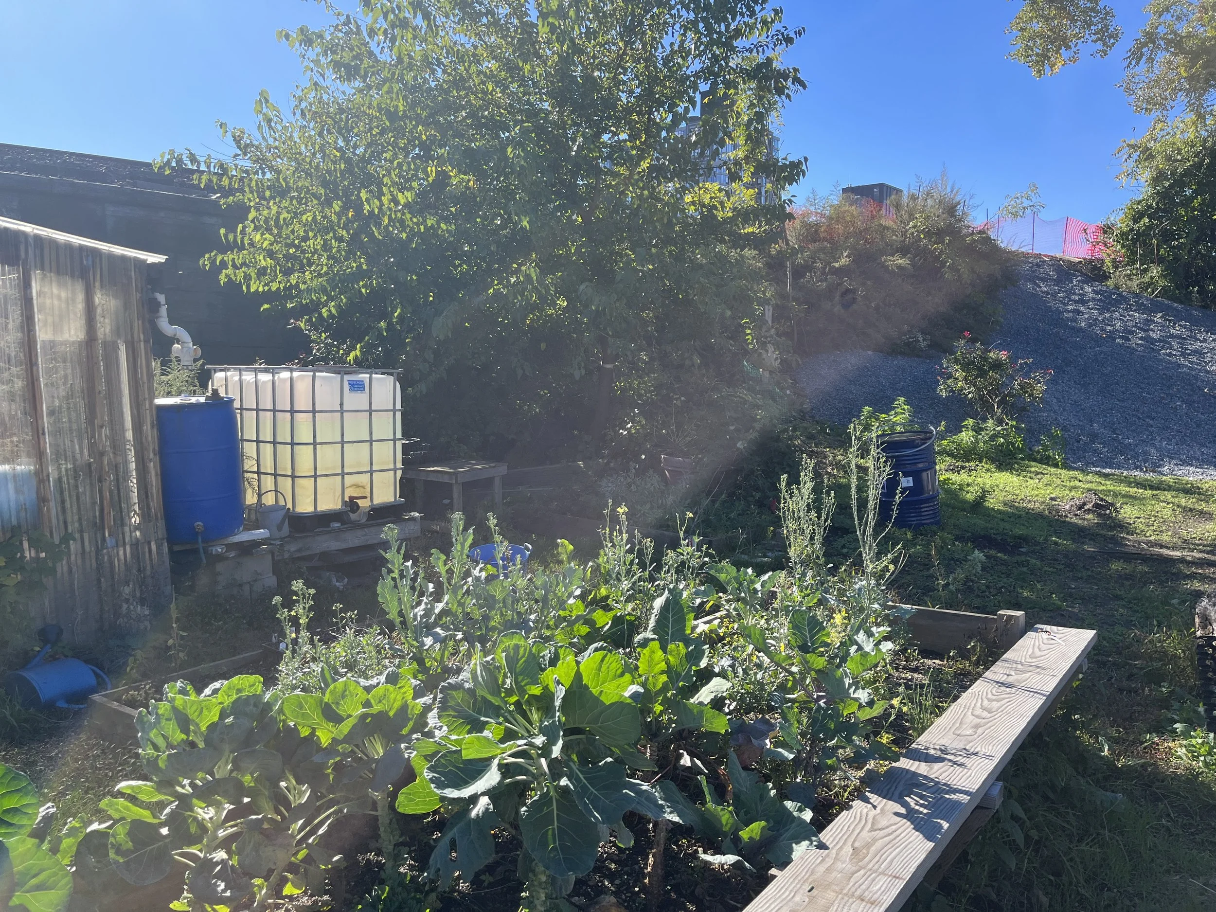 Enhancing community garden access to infrastructure, including power, solar-powered wifi , and rainwater harvesting